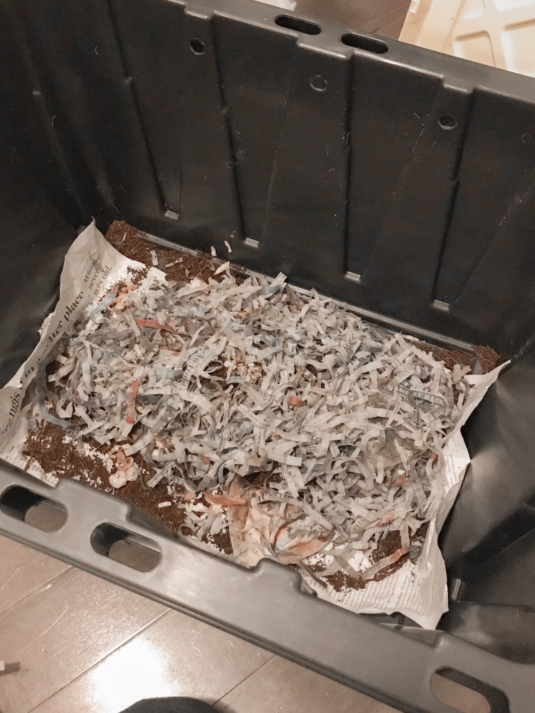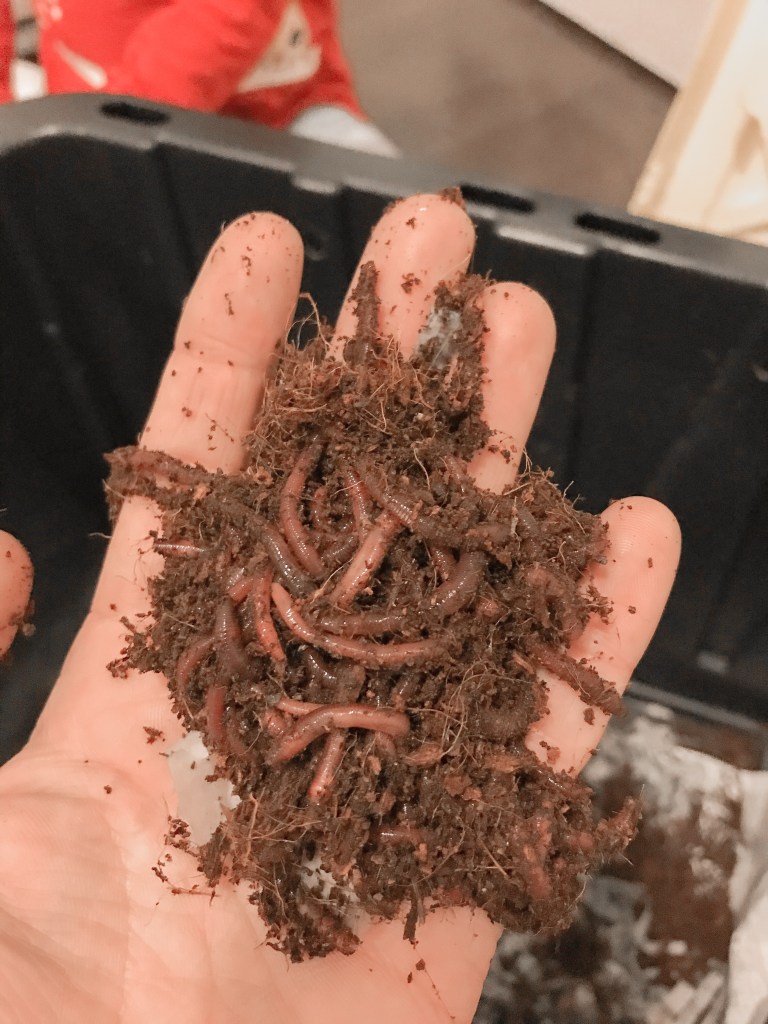 • Worms (we ordered our red wrigglers online from here). It was the weirdest thing I’ve ever received in the mail.