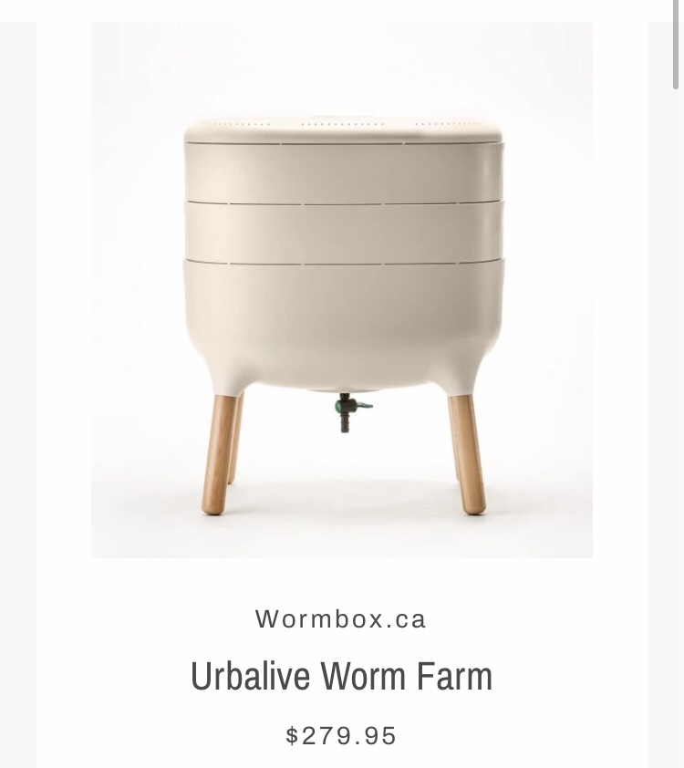 If you have the space, and aren’t totally skittish around worms, I highly recommend setting up one of these worm composters. You can configure it to take up less space and I promise there’s no odour. Here’s what you’ll need: