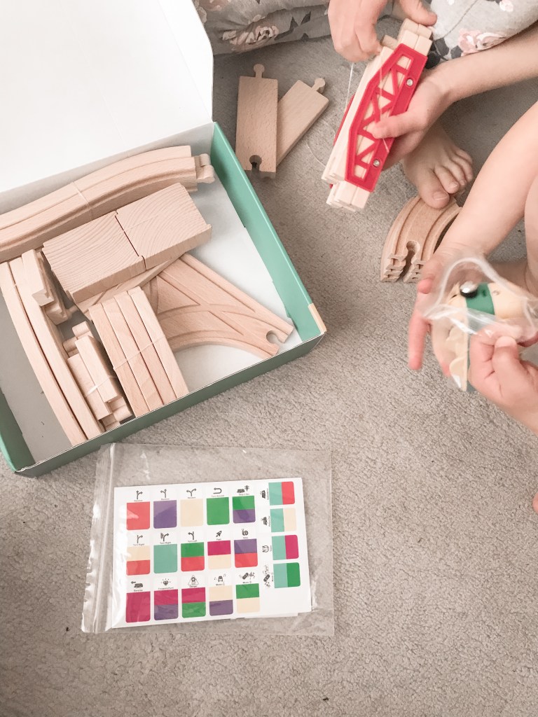 The kids were so excited to set up the tracks and create different set ups for the train with the stickers. And with four sheets of stickers, we’ll be able to come up with hundreds of combinations.